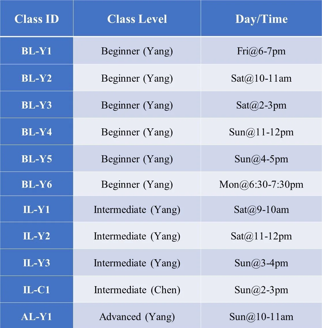 Class Schedule